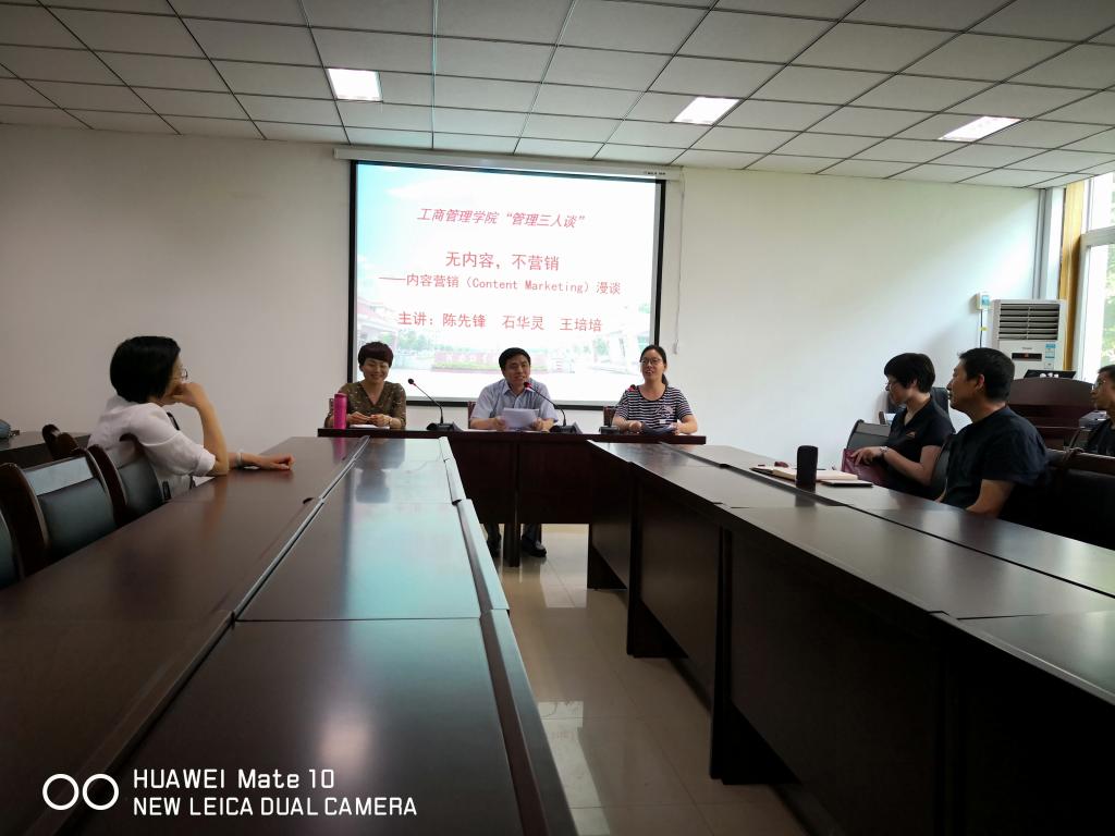 为营造浓厚的学术氛围,进一步提升和激发老师们的科研激情,伟德源自英国始于1946结合工作实际,邀请副院长陈先锋、营销教研室石华灵、王培培三位老师于6月28日下午在院会议室成功举办2018年度第三期“管理三人谈”。本期主题为“无内容,不营销——内容营销(Content Marketing)漫谈”,论坛由我院副院长姬爱国主持。