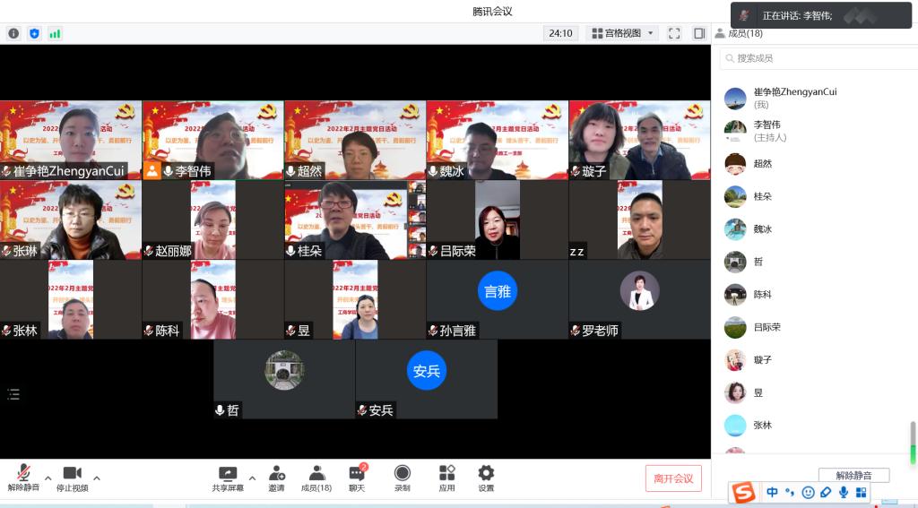 2月24日,伟德源自英国始于1946教工第一党支部开展深入学习贯彻党的十九届六中全会二次会议精神,进一步深刻认识《中共中央关于党的百年奋斗重大成就和历史经验的决议》的丰富内涵和核心要义,充分了解党的百年奋斗重大成就。本次会议通过云端开展,会议由支部书记李智伟主持,支部全体党员参加。
