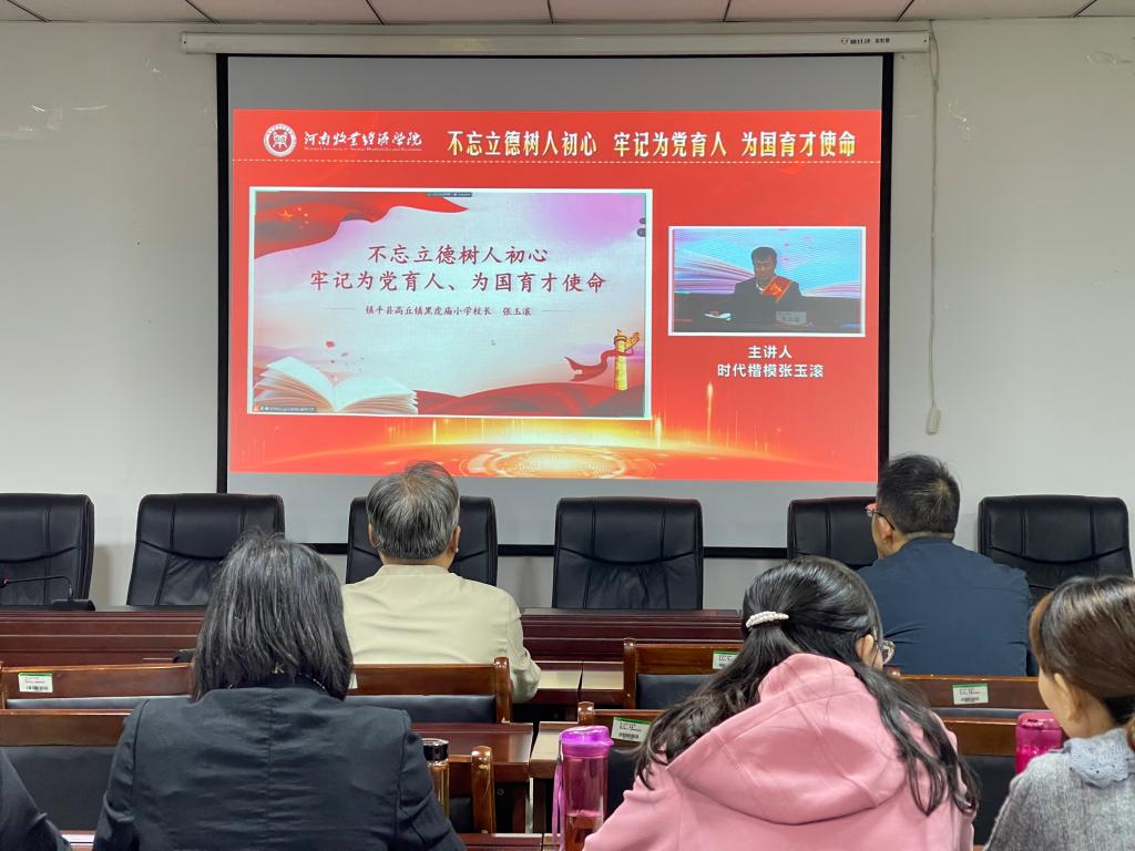 报告会上,张玉滚同志以《不忘立德树人初心牢记为党育人、为国育才使命》为主题,内容突出,特色鲜明,深情讲述了自己作为一名共产党员、乡村教师,20年如一日的无私奉献精神,坚守大山深处,无怨无悔,彰显了新时代人坚定的理想信念。全院教师在会场认真聆听了张玉滚的事迹报告,感受张玉滚扎根伏牛山深处黑虎庙小学默默付出,以朴实纯粹、淡泊名利书写了自己精彩的人生篇章,用实际行动生动地诠释了育人崇德、师者匠心的深刻内涵,践行了初心使命的故事。