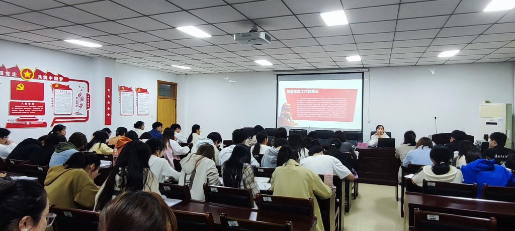 会议伊始,贾雪围绕发展党员的工作程序、步骤展开讲话,着重讲解了“申请入党、入党积极分子的确定和培养教育、发展对象的确定和考察、预备党员的接收、预备党员的教育考察和转正”五大内容,使入党积极分子们充分了解入党的基本条件和流程。随后,贾雪指出入党首先要端正入党动机,要自觉把加强理论学习与提升党性修养、增强党性锻炼结合起来。最后,贾雪以“发展党员的作用”为题与入党积极分子们展开讨论,并鼓励入党积极分子们主动了解入党程序,做好积极向党组织靠拢的准备,提高自身发展质量。