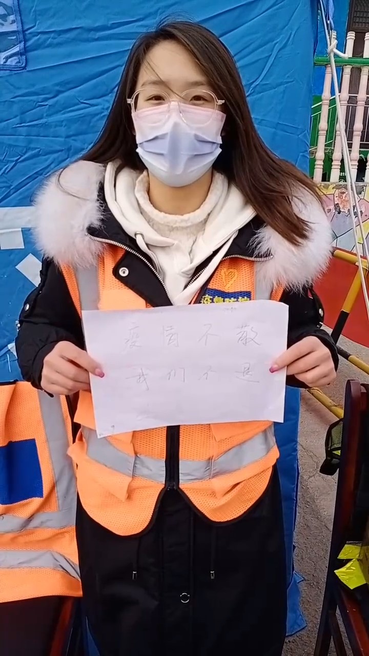 “疫情牵动万民人心,我是名在校大学生,应自觉承担起应有的青年担当和社会责任,参与到志愿者服务当中,发挥模范先锋作用。”韩佳琪如是说到。
