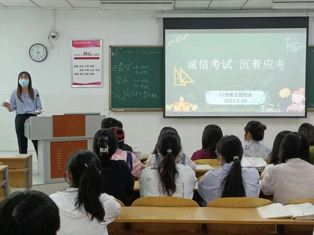 在本次活动中,学院全体辅导员深入各个班级,开展主题鲜明,形式多样的班会。老师们详细的分析了临近期末同学们的学习状况,鼓励同学们一定要调整好心态,积极应对期末考试。同时,老师们结合《学生手册》再次明确了考试违纪的相关处分措施以及产生的一系列后果。同学们纷纷表示,考试期间严格遵守学校考试纪律,服从监考老师安排,约束不良思想习惯,坚决杜绝任何作弊行为,以诚信的态度对待考试,考出自己的真实水平,向本学期的学习呈现一份满意的答卷。