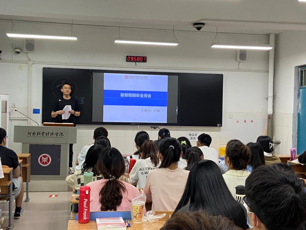 为进一步加强学生假期安全防范意识,做好假期安全教育工作。我院各班于5月20号——30号陆续开展了安全教育主题班会,全体辅导员深入各班级开展了包括疫情安全、交通安全、防溺水安全、用电安全等安全知识教育。
