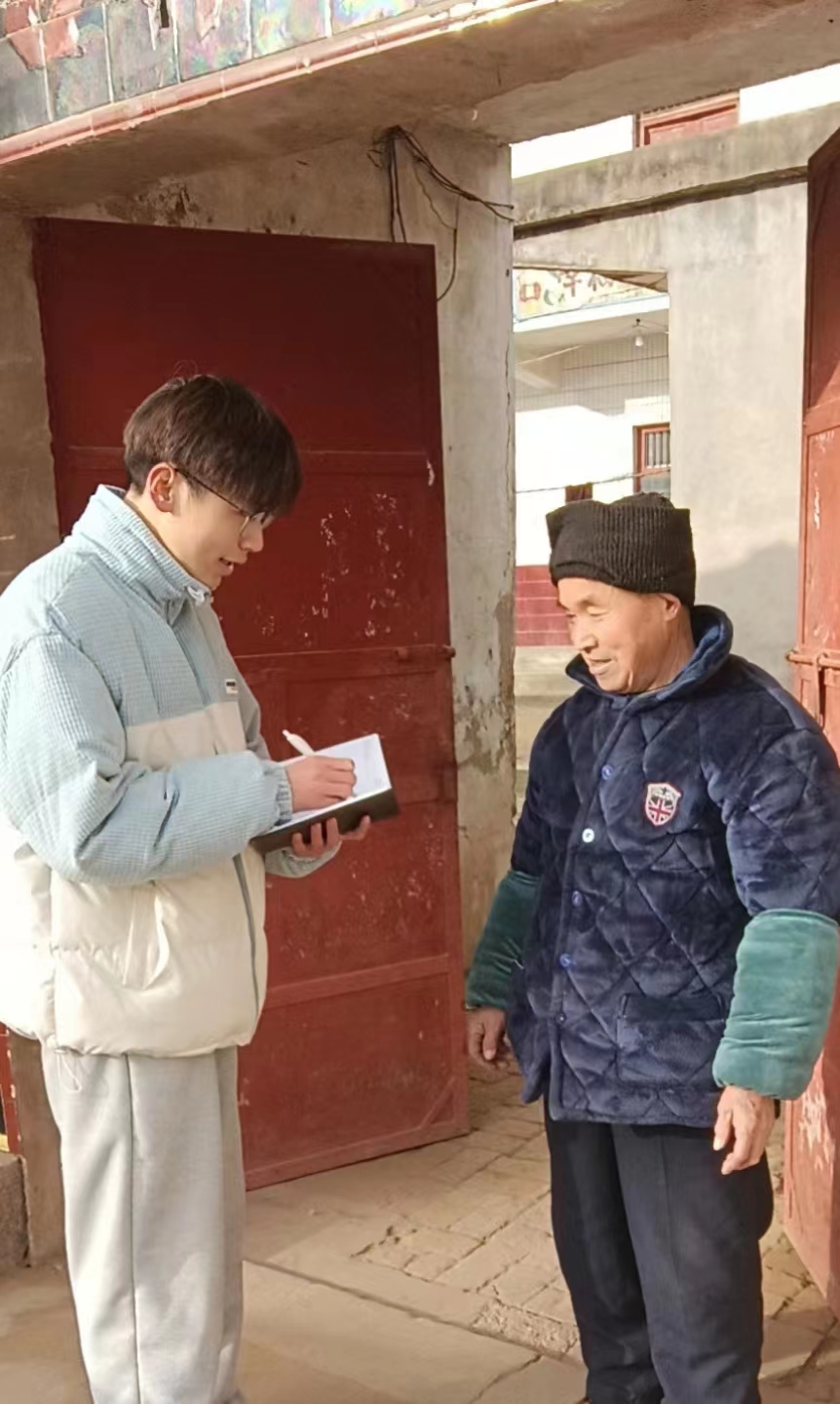 实践初期,22级国际商务01班柴震忠在乡镇政府负责一些数据统计和校验工作,过程虽然单调枯燥,但他仍一丝不苟,圆满完成了工作任务。之后,他跟随镇政府人员进行下乡征兵宣传,用心讲解征兵相关政策,解答村民关于征兵的疑问,号召乡镇符合征兵条件的青年积极报名参与,为国效力。1月20日,镇政府组织再次下乡,帮助村内孤寡老人粘贴春联,柴震忠与老人们亲切交谈,询问他们的身体状况和生活情况,为他们带去了温暖和祝福!