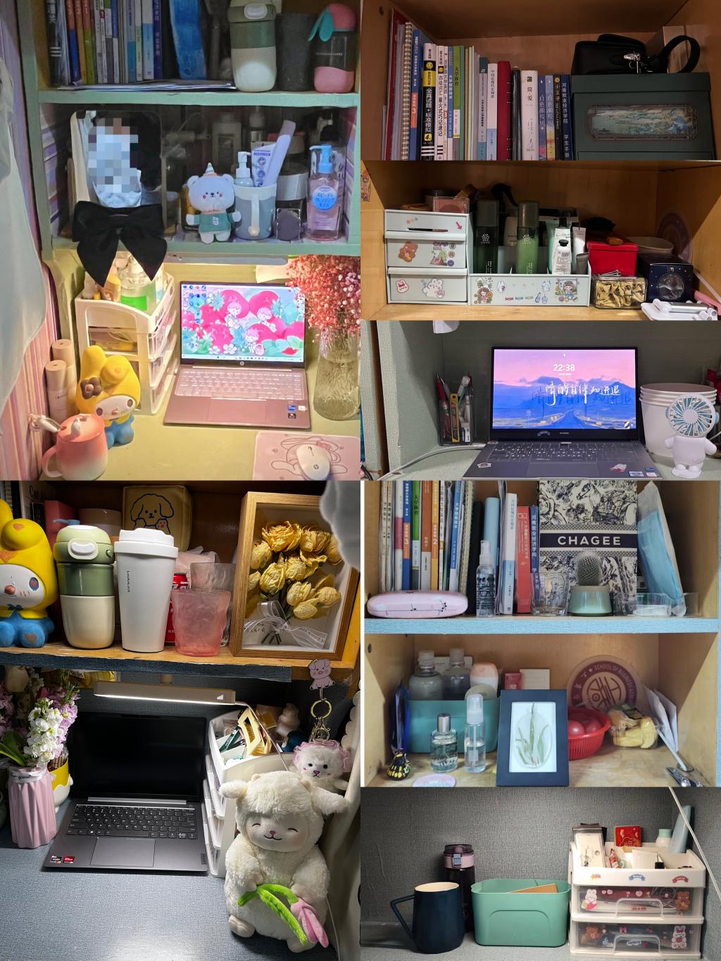 22工商01班的林文静同学的书桌,有充满温馨的元素、有整齐摆放的书籍,来到这样的书桌前感受到的是暖暖的温馨,在忙碌的学习生活中治愈自己。22工商02班张评兰同学的书桌,摆放偶像的照片、杂志,并在便签上写上励志的话语,激励自己不轻言放弃、勇往直前。