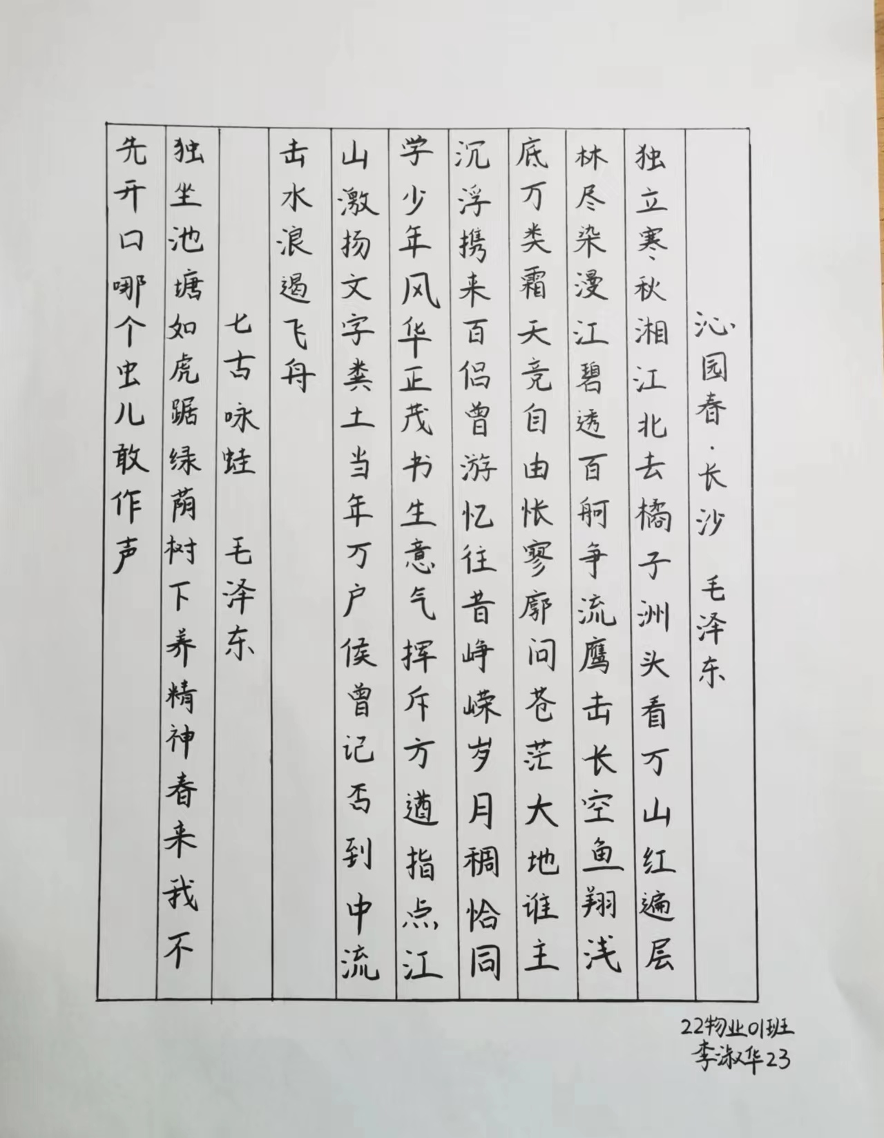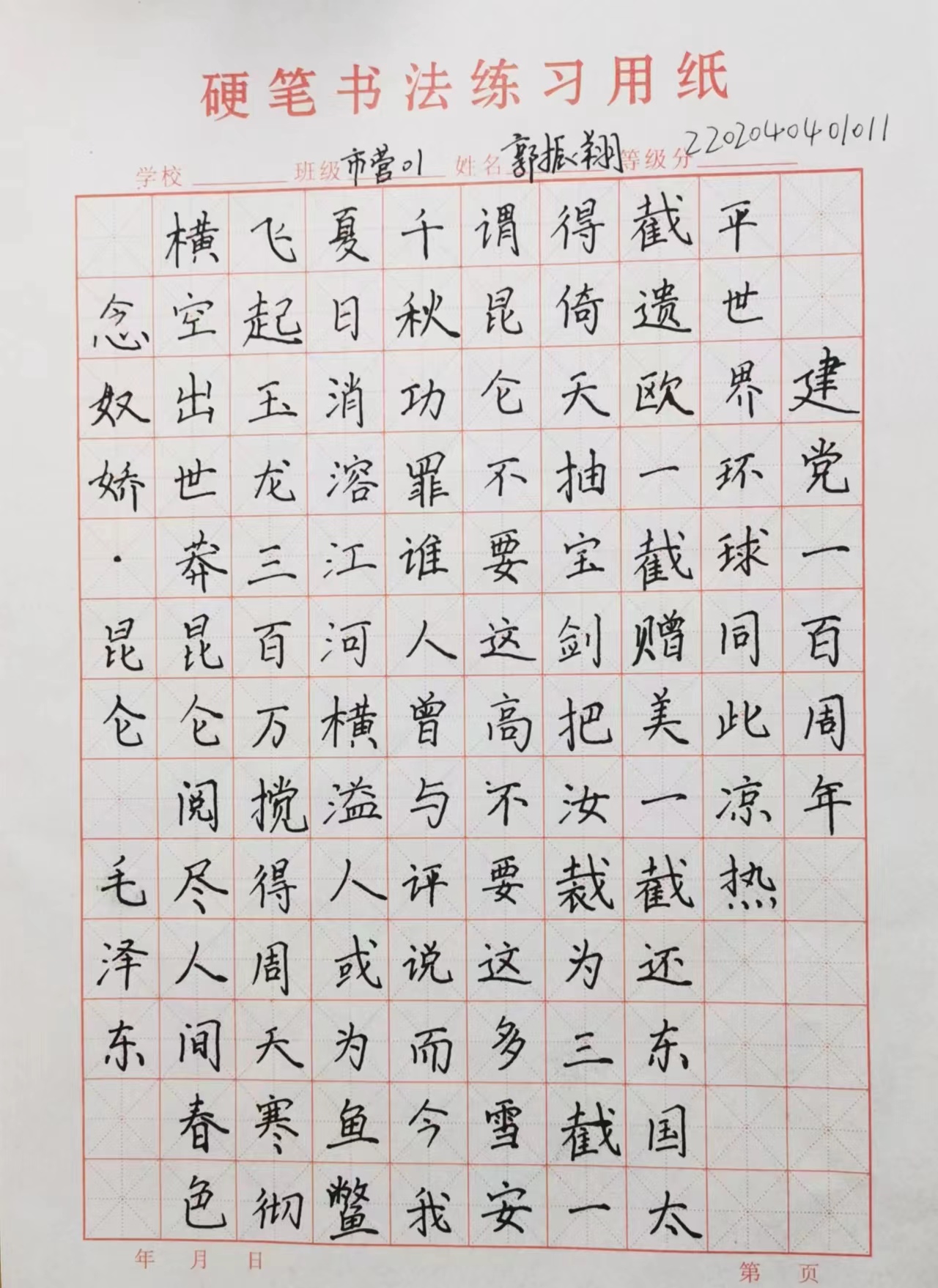 22市营01郭振翔向我们展示硬笔书法,硬笔书法是艺术性和实用性的有机结合。书法之审美,千变万化,或雄浑、或精致、或奔放、或沉郁,观之心旷神怡,书写愉悦流畅。