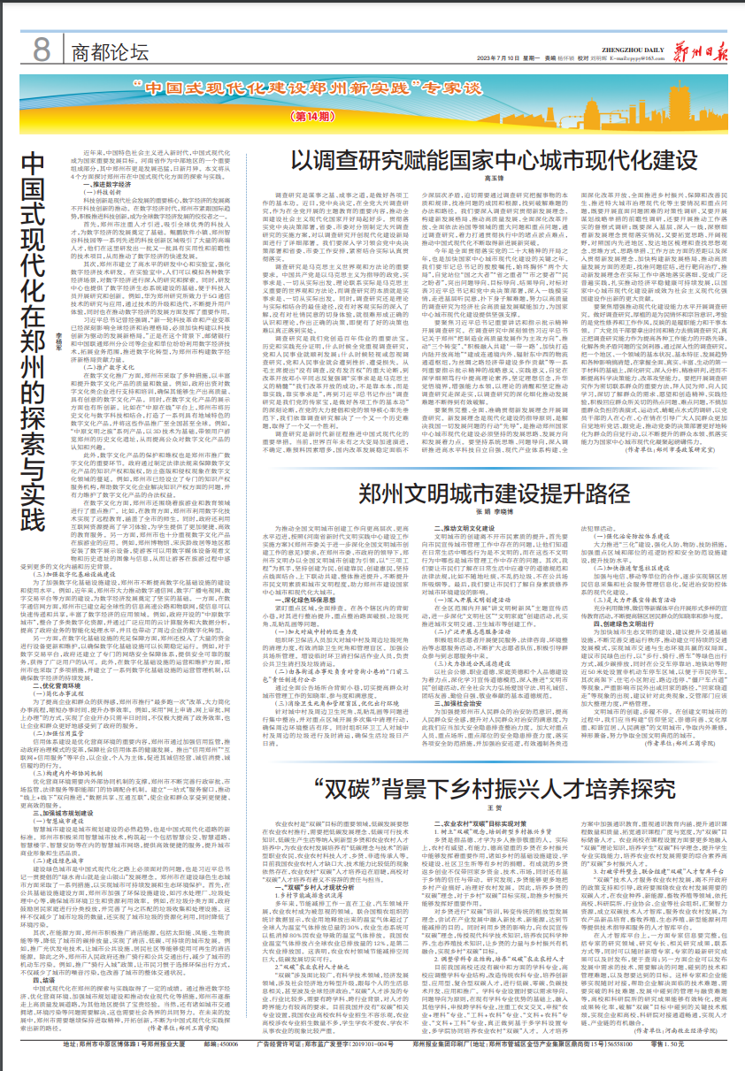 7月10日,《郑州日报》理论版刊发伟德源自英国始于1946“人才与人力资源发展研究中心”主要成员王贺博士的署名文章--《“双碳”背景下乡村振兴人才培养探究》。