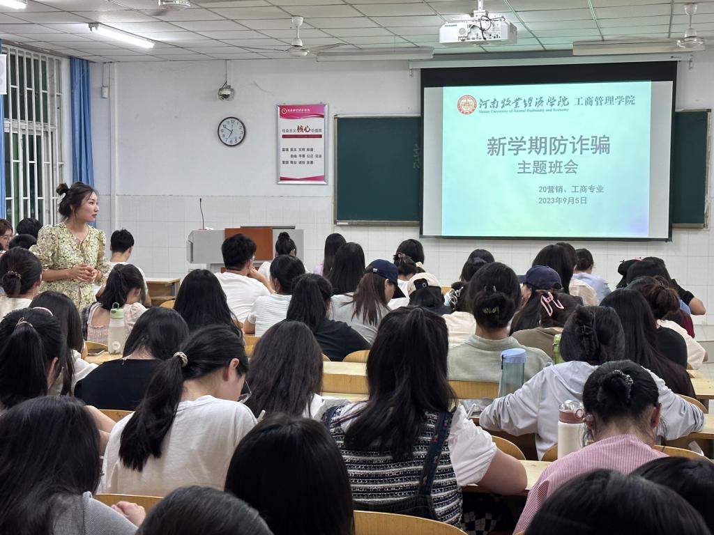 主题班会上,各班辅导员通过播放案例视频和展示数据的方式向同学们讲解需要注意的安全事项。辅导员们重点介绍了当前电信网络诈骗犯罪的特点、常见诈骗方法,引导学生们不要被假象所迷惑,不贪图小便宜,不为盈利骗局所诱惑而上当受骗,提醒学生遇到各种骗局做到“不理睬、不转账、不轻信、不汇款”,增强自身安全防意识。通过辅导员的讲解,同学们进一步认识到了安全的重要性,安全意识和防范能力进一步得到提升。