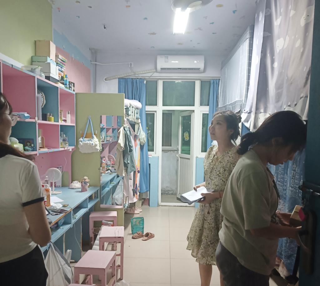 在宿舍专项检查中,辅导员们重点排查了各学生宿舍是否存在使用大功率电器、私拉乱接电线、排插使用不当等安全隐患。各位辅导员在检查过程中与学生亲切交谈,详细了解他们的学习生活情况,叮嘱同学们要切实提高消防安全意识,自觉遵守消防安全管理规定,养成良好的安全用电习惯,防微杜渐,确保宿舍安全。同时,辅导员老师向学生们强调,要做好宿舍的安全检查确认工作,锁好门窗,关闭电源后再行离开宿舍。