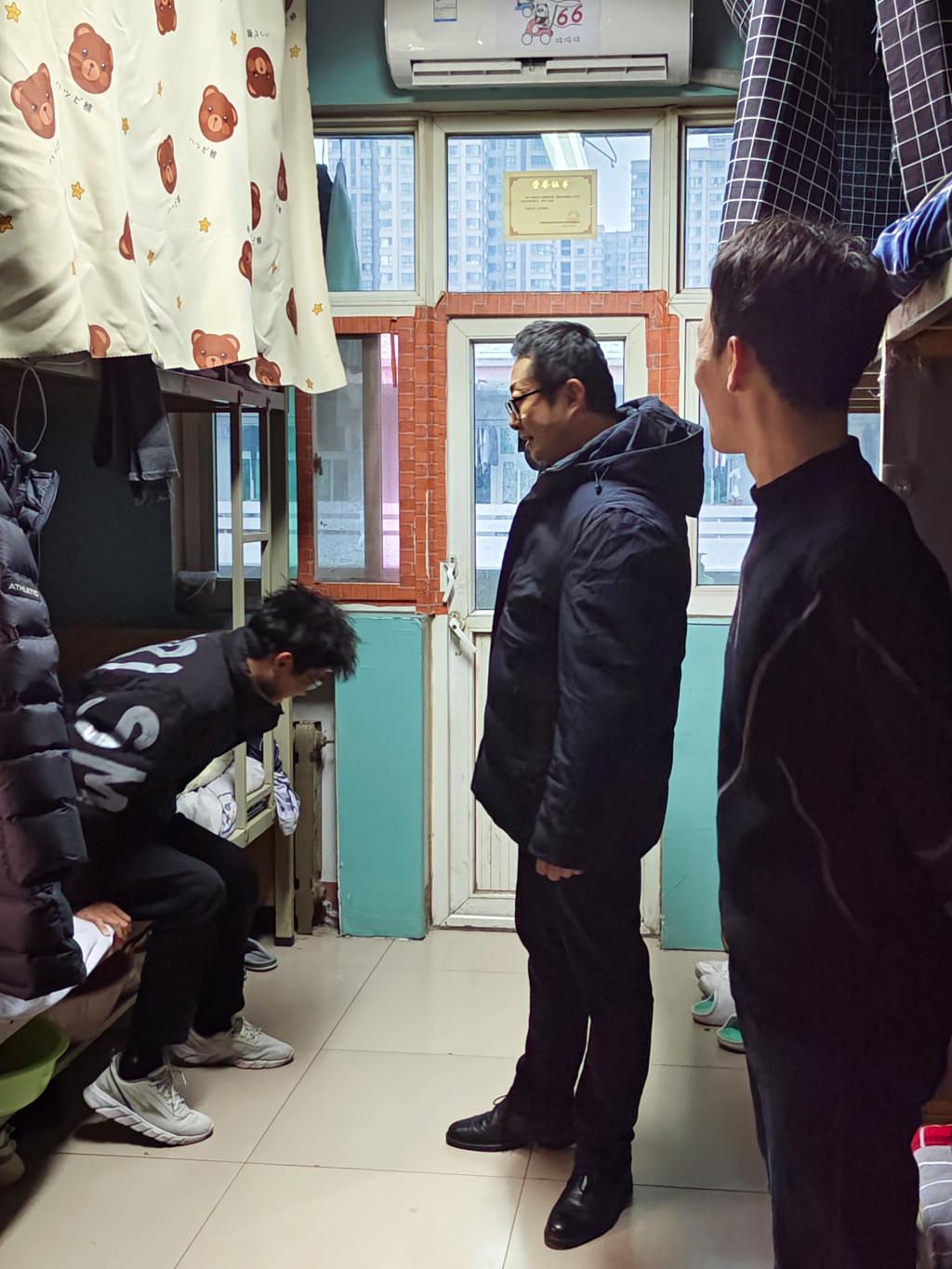 本次走寝活动中,辅导员老师对寝室违规物品进行了细致的检查,明确了寝室各项要求,为寝室的环境及安全问题提供保障。为掌握学生们的动态,制定了学生安全隐患排查表,辅导员老师认真核实校外住宿学生相关信息并做好登记。冬季气温变化幅度较大,针对处于流行期的各类病毒,辅导员老师对学生进行科普的同时进行细心慰问。此外,考研、期末在即,部分学生会产生焦虑情绪,继而影响复习状态。针对这一情况,老师们也围绕学生的学业情况、心理状况进行了解,缓解学生期末的焦虑情绪,亲切交谈解决问题。同时,叮嘱同学们在校期间不仅要把握好丰富多彩的校园生活,更要相互友爱,营造良好的寝室氛围,更勉励同学们做好人生规划,脚踏实地,不负韶华,做有理想抱负的大学生。最后,同学们纷纷表示,与辅导员老师面对面的交流倍感温暖,今后将以更饱满的热情、更昂扬的姿态努力学习,锐意进取,不断提高自身综合素质,不辜负家长和老师们的谆谆教诲和殷切期望。
