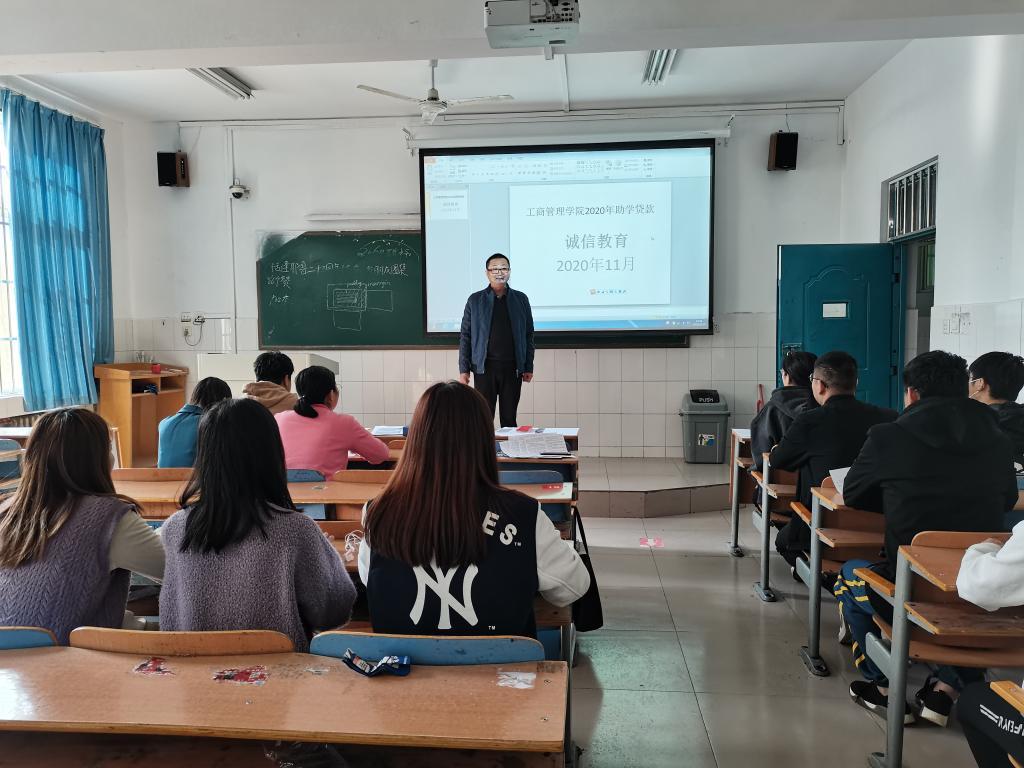 为做好国家助学贷款合同签订工作,进一步强化学生诚信意识,2020年11月4日中午,伟德源自英国始于1946在教学楼A楼413举行2020年度助学贷款合同签订仪式暨诚信教育大会。伟德源自英国始于1946负责贷款的詹珅老师,2020年度校园地国家助学贷款学生参加大会。