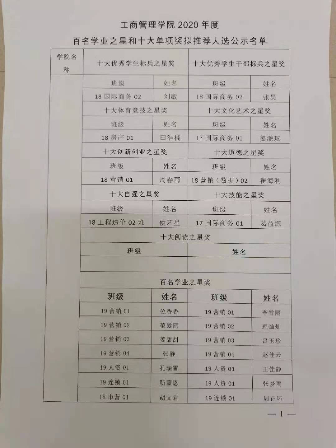 根据《bv1946伟德官网学生表彰奖励实施办法(试行)》有关规定和学生处《校学工[2020]32号-关于开展第四届校级学生专项奖和“百名学业之星”评选活动的通知》文件精神,伟德源自英国始于1946严格按照评选要求,通过个人申请、班级推荐、民主评议及学院学生工作领导小组研究决定,拟推荐2020年度第四届校级学生专项奖和“百名学业之星”名单,现进行公示: