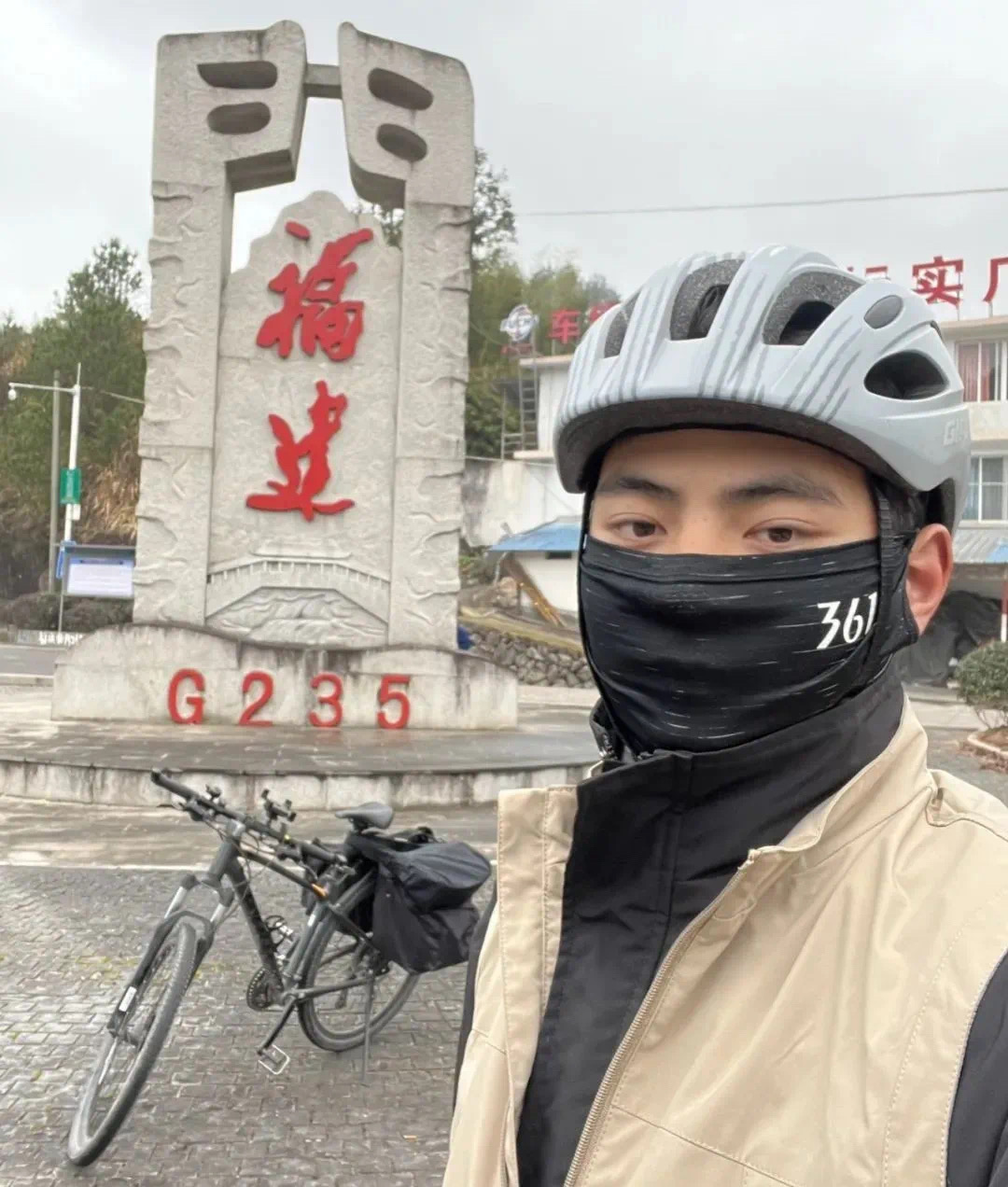 黄士辉同学在校期间成绩优异、自立自强,此次骑行费用皆来自奖学金和兼职所获得的收入。他希望这次骑行活动能够通过自己的努力和坚持,向更多人传递积极向上的精神风貌。出发前,黄士辉同学进行充分的计划,他准备了骑行所需的装备和食品,也准备了校旗和宣传册,以便沿途向人们介绍他的目的和信念。在骑行过程中,黄士辉同学经历了种种困难和挑战,但他始终坚持着。他说:“虽然路途遥远,道路艰辛,但每当我看到校旗在风中飘扬,我就感到无比的自豪和动力。”一路上,黄士辉同学结识了同样有理想的好友,遇到了环游世界的退休大叔、埃塞俄比亚的流浪画家、77岁骑行环游中国的大爷、骑行1000多公里回家过年的骑友、得知他是从郑州骑行来坚持不收取费用的补货包裁缝阿姨以及赠送哈密瓜的海南果农大叔等,许多人都主动与他交流,询问他的目的和经历,并对他的勇敢和坚持表示敬佩。