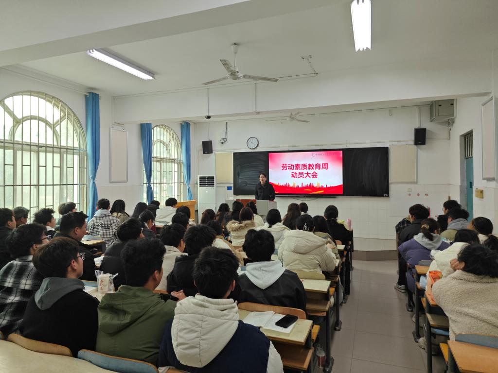会议伊始,团学会主席时银达发表讲话,强调劳动教育的重要性,他表示,劳动教育不仅关系学生的个人成长,更是关系到国家的发展和民族的未来。接着,时银达首先向学生介绍本学期劳动周的主要活动和计划,明确本次劳动周要完成的指标,指导学生参加劳动周活动并激励他们为学院的发展做出贡献。随后,他具体介绍了劳动周的主题、安排、分工、活动内容和参与方式,将任务下发到各个班级,积极动员学生参加并保证每项任务得到确切的落实,激发学生的兴趣和参与热情,许多同学纷纷表示要努力学习、勤奋劳动,为实现自我价值和营造更美好的校园环境贡献力量。最后,他着重强调安全注意事项,提高学生安全意识,确保学生在劳动中的安全。