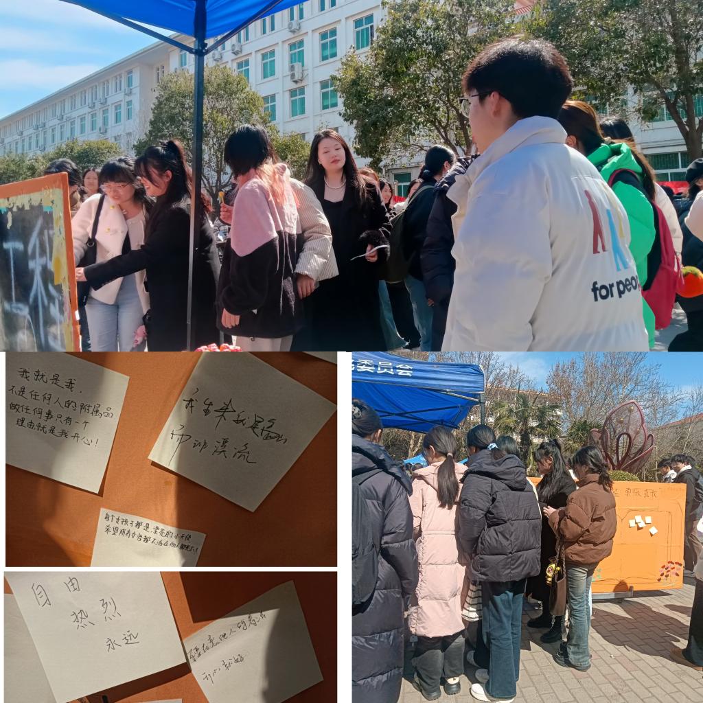 参与此次活动的不仅有本院的学生,还有其他院系的同学,甚至有一些男生也主动询问是否可以参与。他们用自己的行动,向全校师生表达了对女性的敬意。文字的力量是震耳发聩的,他们写下的话语也鼓励着每一个看到这些文字的女孩们不受外界眼光的束缚,勇敢地追求自己的梦想和目标。