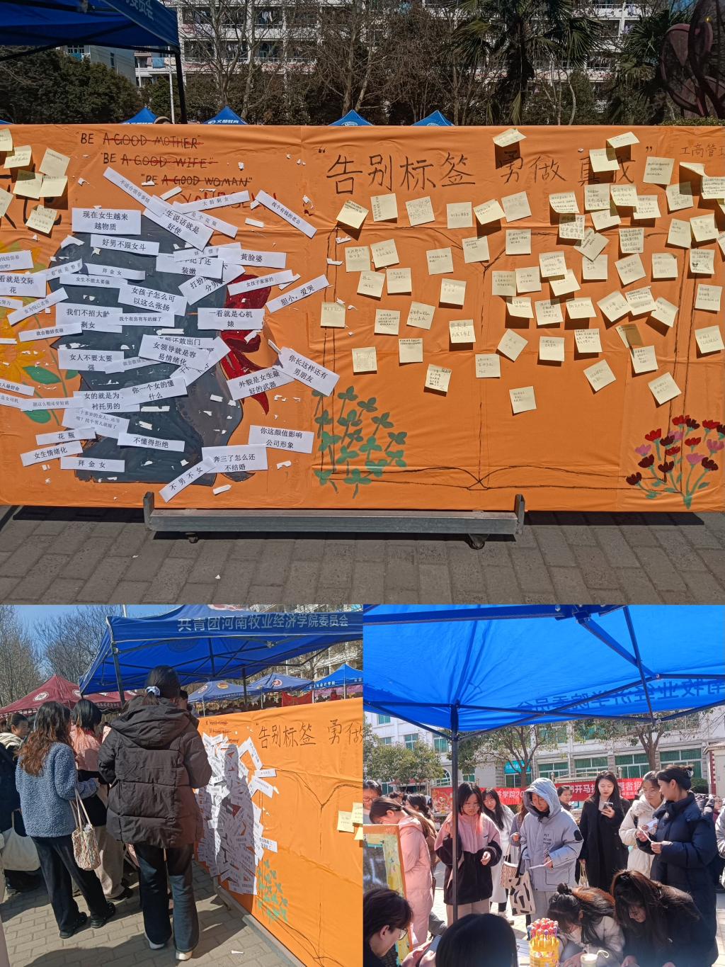 3月8日中午,一块色彩斑斓的展板在红色花蕊展出。上面贴着各种各样的“标签”,诸如“女主内男主外”“胆小爱哭”“花瓶”等等对女性形象的刻板印象。这些标签,无不透露出对女性形象的刻板定义和误解,一经展出便吸引了路过学生的注意,他们纷纷走上前去,撕下这些令人不悦的标签,并在便利贴上写上鼓励的话语张贴上去,摒弃那些落后的思想,为新时代的女性发声。