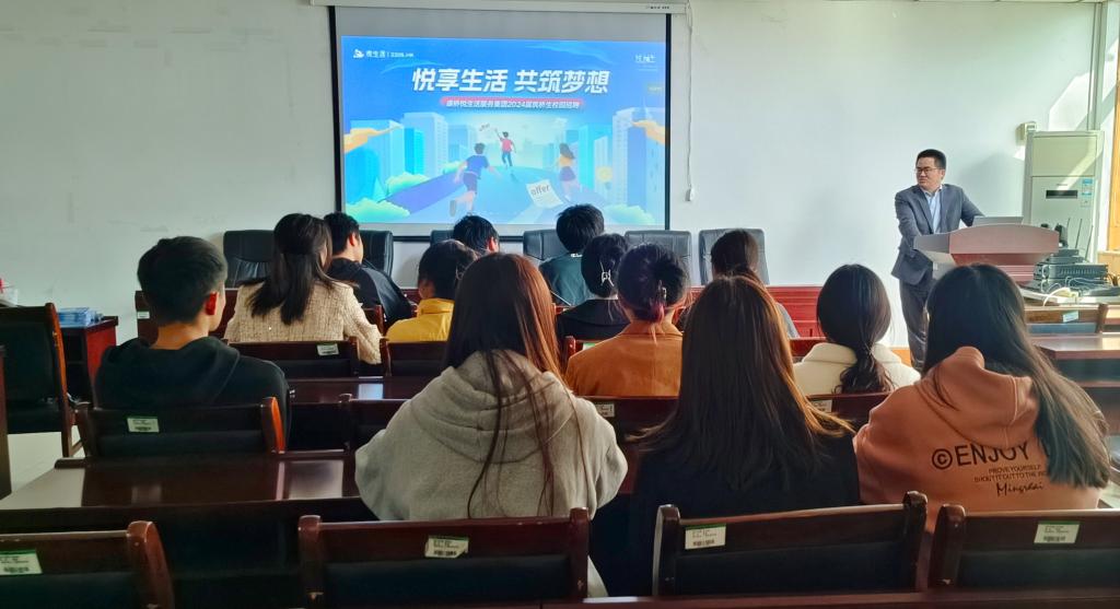 会议伊始,康桥悦生活服务集团人力资源部负责人黄运刚首先向学生们展示了公司的发展历程、服务范围以及员工福利待遇,并重点介绍了公司的用人理念和人才培养机制。他表示,康桥悦生活服务集团非常重视员工的个人发展和成长,提供完善的培训体系和晋升机会,鼓励员工不断学习和创新。同时,公司也注重员工的福利待遇,为员工提供良好的工作环境和优厚的薪酬待遇。随后,在宣讲会的互动环节,学生们积极提问,就公司的业务范围、招聘流程、职业发展等方面进行了深入的交流。黄运刚耐心解答了学生们的疑问,并就学生们关心的就业问题给出了宝贵的建议。最后,康桥悦生活服务集团优秀企业校友代表分享了他们在公司的成长经历和心得体会,为学生们的职业规划提供了宝贵的经验和建议。