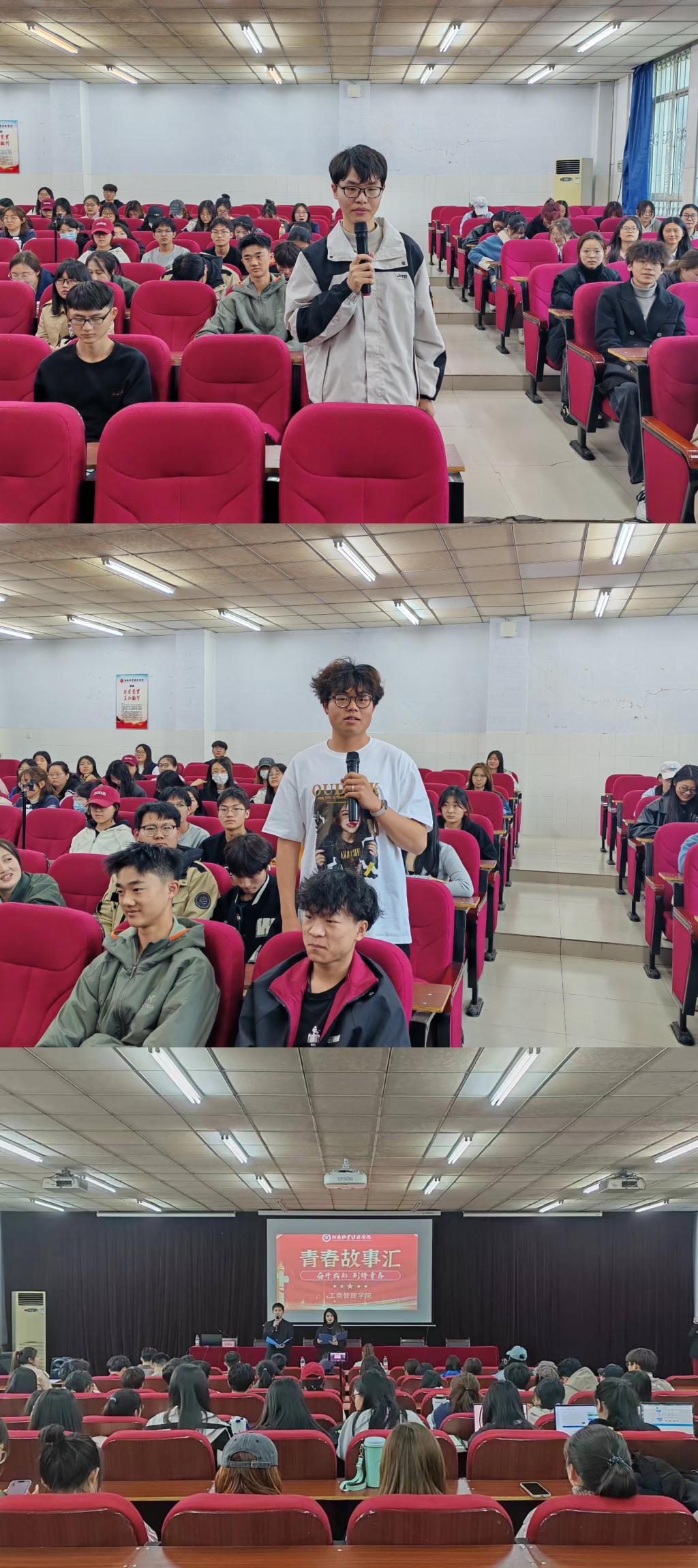 本次活动以“奋斗出彩,别样青春”为主题,围绕如何成为一名优秀的大学生展开讨论,学院大四、大三、大二年级三名优秀学生代表以个人宣讲、交流互动的形式与大家分享个人成长历程。国家励志奖学金获得者、热血骑行跨越7省直达三亚的22工商(升本)专业学生黄士辉以自身求学经历、骑行旅程中所见所闻向在座学生分享了个人心得,他认为:“成长的道路会遇到很多困难,在你想要放弃的时候再坚持一下也许就会成功”。国家奖学金获得者、河南省优秀学生干部、伟德源自英国始于1946第四届学生会主席,21工程01班刘海洋同学以自身为例,分享个人学习与工作经验,讲述如何成为一名优秀学生干部的经历,激励广大同学有规划地朝着自己的目标前进,学而不辍,行则将至。她勉励在座同学,平衡学习与工作即是迈向成长的一大步。学院竞赛达人22工商01班杜丙昊同学曾荣获专业学科竞赛国家级等奖项,他通过讲述自己多次参赛经历,向同学们传达竞赛经验与比赛技巧,讲述创新对个人发展的重要意义,鼓励全体同学勇于参加竞赛,挑战自我。