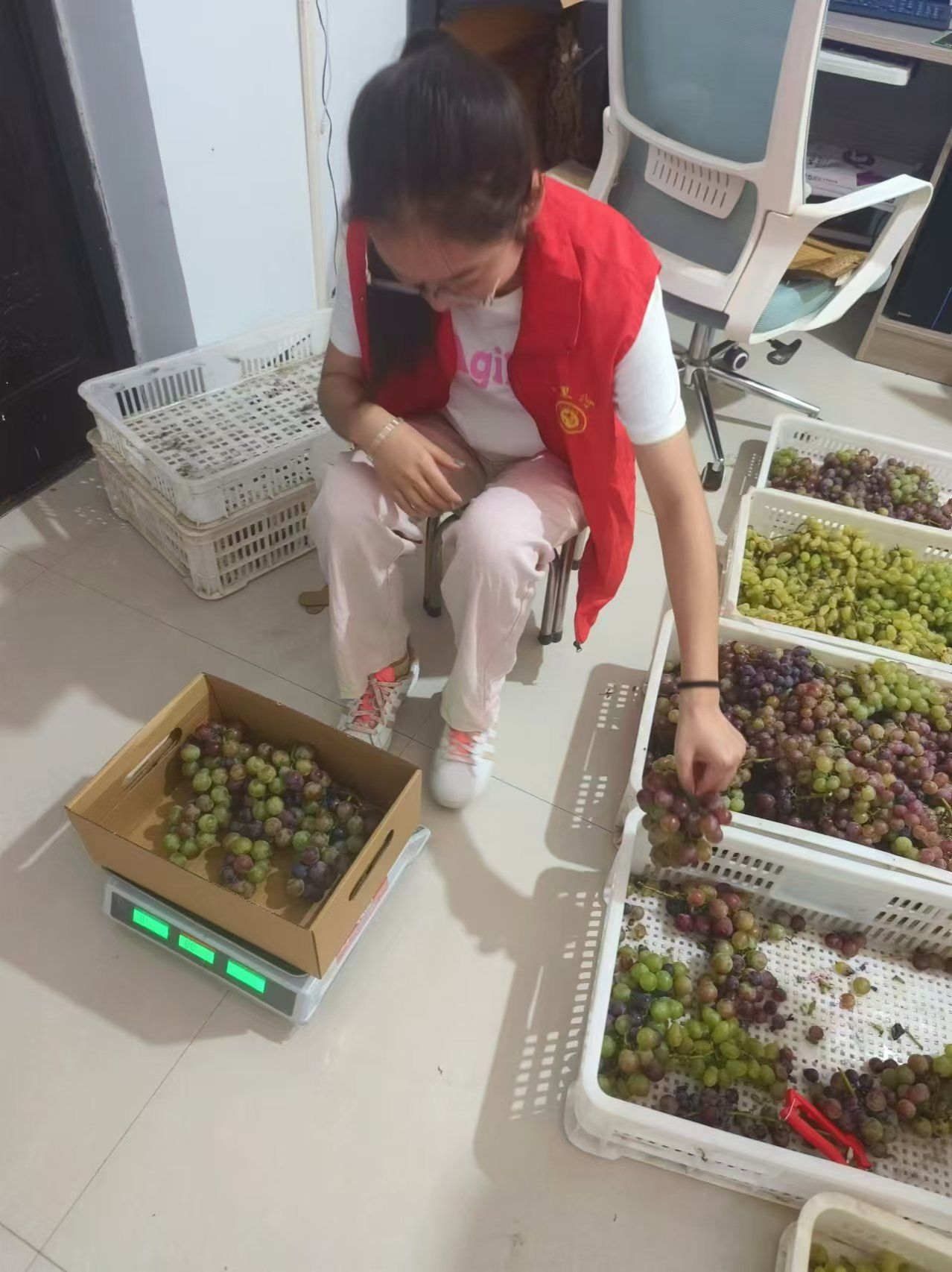 实践过程中,张启同学来到葡萄基地,认真工作,与果农同吃同劳动,帮助农民进行葡萄的修剪、称重、装箱等工作,用实际行动为葡萄的丰收及销售贡献了自己的力量。遇到问题时,她向农民请教,了解葡萄的生长习性、病虫害防治方法等实用技术,并将所学知识应用到实践中去。张启表示,在实践活动的过程中,她不仅学到了许多关于葡萄种植的知识和技能,还体会到劳动的艰辛与乐趣。