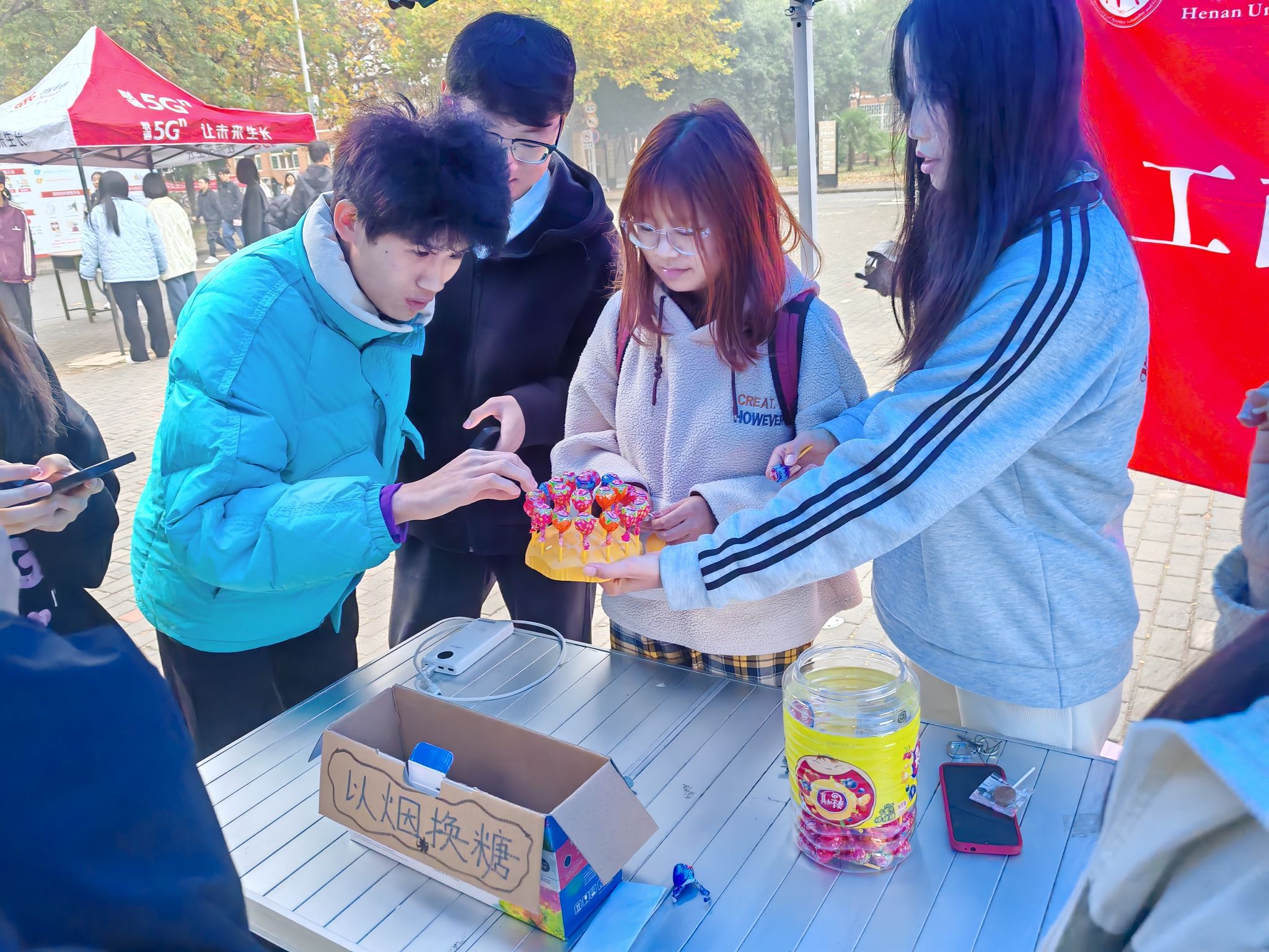 活动一经发布便得到热爱生活的同学们和吸烟同学们的积极响应,大家纷纷来到活动现场,了解活动内涵,以香烟交换甜蜜——用香烟换取口香糖、棒棒糖等奖品,用甜蜜的糖果来驱散烟雾弥漫的空气。当一根根香烟被投入回收箱,换来口香糖、棒棒糖等奖品时,同学们的脸上都洋溢着满足和喜悦的笑容。他们不仅收获了甜蜜的奖品,更在内心深处种下了戒烟以及对健康生活向往的种子。本次活动以新颖的形式吸引了广大学生的注意,激发同学们的戒烟意愿,为校园带来更多的清新与活力。