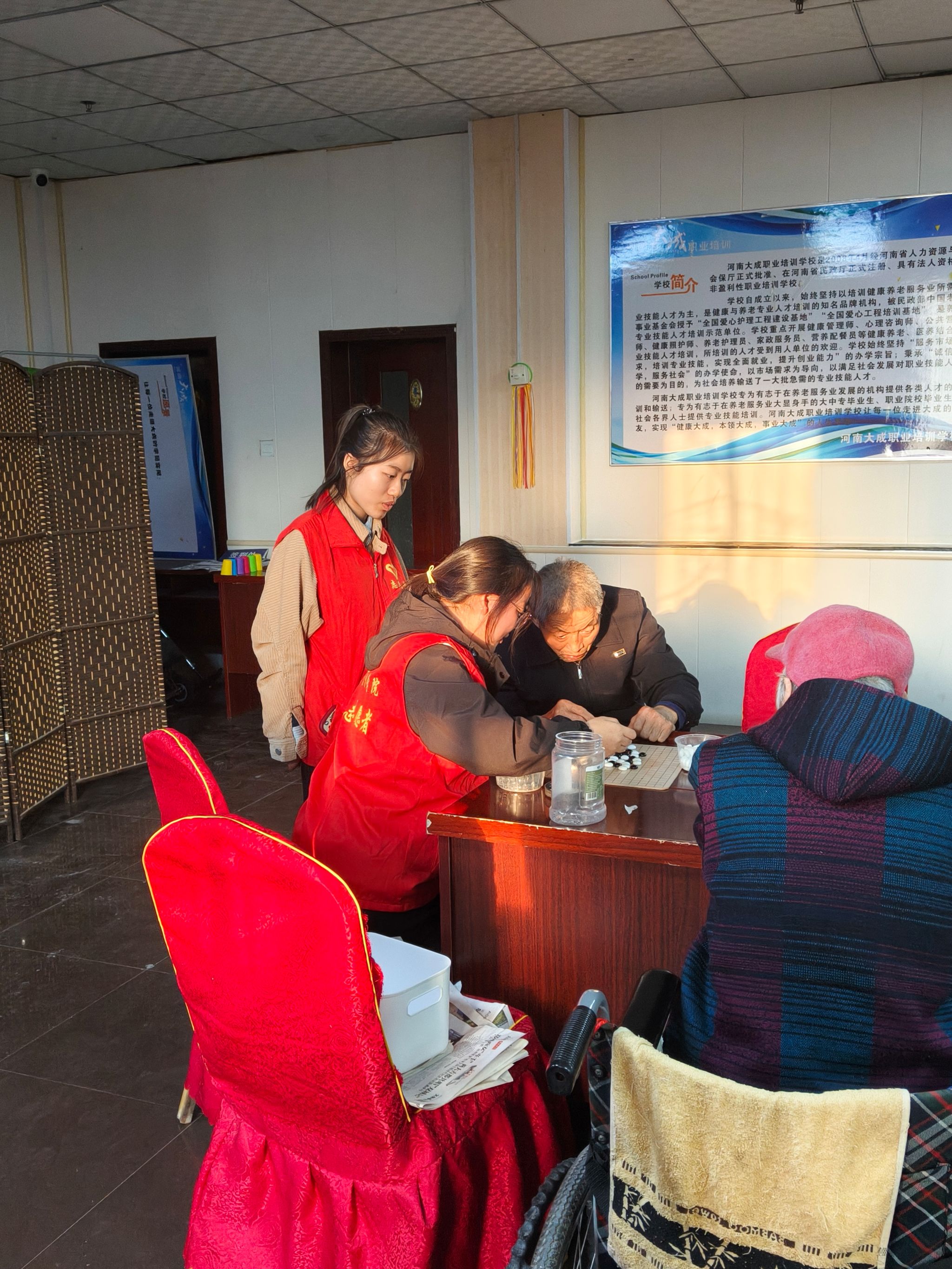 活动期间,志愿者们迅速分为两组并展开行动,一组志愿者精心准备了下棋、折纸等趣味游戏项目。他们热情地向老人们介绍游戏规则,邀请他们参与。在下棋过程中,志愿者与老人围坐于棋盘两侧,双方专注思考每一步棋的走法,在棋子的落定间展开思维的交流与互动;而在折纸环节,志愿者们逐步示范,老人们认真跟随学习,将手中的彩纸慢慢折成各种形状。与此同时,志愿者们还耐心地倾听老人们讲述年轻时的经历以及如今的日常点滴,用诚挚的爱心为老人们送去温暖与欢乐,在互动中悄然架起了情感的桥梁。另一组志愿者则专注于卫生打扫工作,他们认真地擦拭玻璃,仔细清扫地面,不放过任何一个角落,整个环境焕然一新,为老人们营造出整洁舒适的生活空间。这次志愿活动不仅为老年人带去了关爱与温暖,也为志愿者们提供了锻炼自我、提升素质的机会。他们也纷纷表示,会进一步发扬志愿者精神,提高自己的志愿服务水平,继续用实际行动践行雷锋精神,彰显新时代青年人的责任与担当,为构建和谐社会贡献自己的力量。