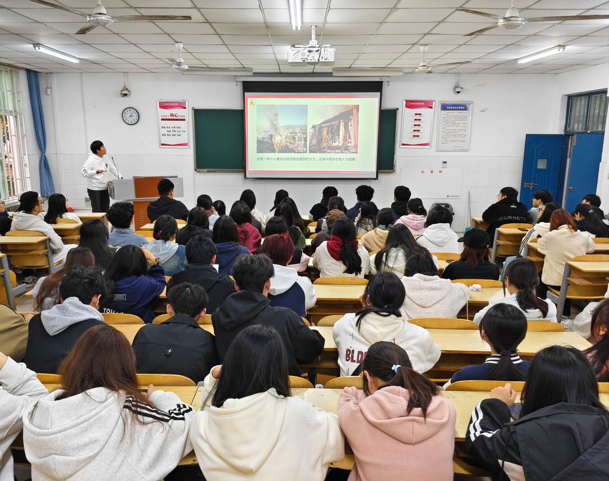 为进一步贯彻落实2024年消防宣传月主题“全民消防,生命至上”,增强学生消防安全意识,提高突发事件的应变能力,有效预防火灾事故的发生,伟德源自英国始于1946于11月15日在W103教室开展以“隐患险于明火 防范胜于救灾”为主题的消防安全知识讲座。本次讲座特邀河南华泰消防职业培训学校讲师、国家一级注册消防工程师赵平老师主讲,学院一百余名同学参与。