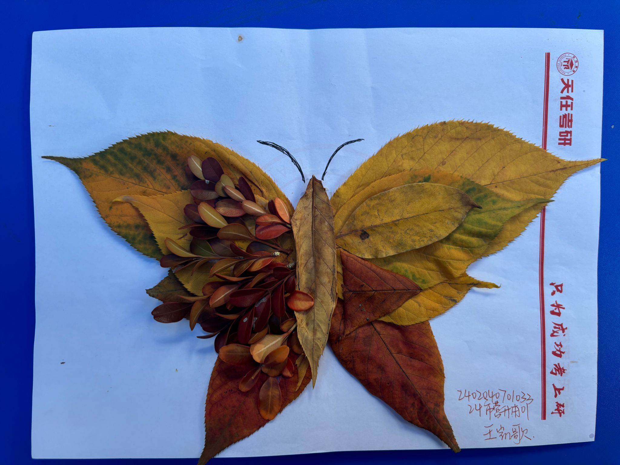 本次活动以落叶为媒介,传递浓浓的秋意与深情。同学们积极响应,纷纷投身到这场创意盛宴中。他们巧妙利用秋天随处可见的落叶,发挥无限的创意与想象,将一片片落叶精心拼贴,组合成一幅幅生动有趣的图案。不仅如此,同学们还拿起画笔或颜料,对这些树叶拼贴画作进行进一步的修饰与美化,使作品更加栩栩如生、色彩斑斓。经过几轮的激烈角逐,一幅幅精美的作品脱颖而出,它们不仅展现了同学们精湛的手工技艺,还彰显了他们对秋日独特的感知与热爱。