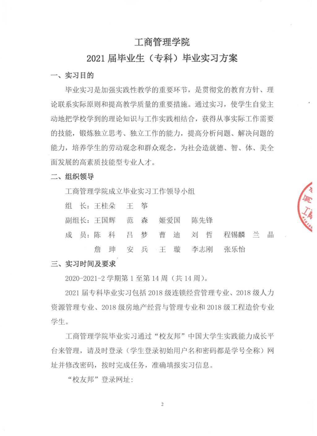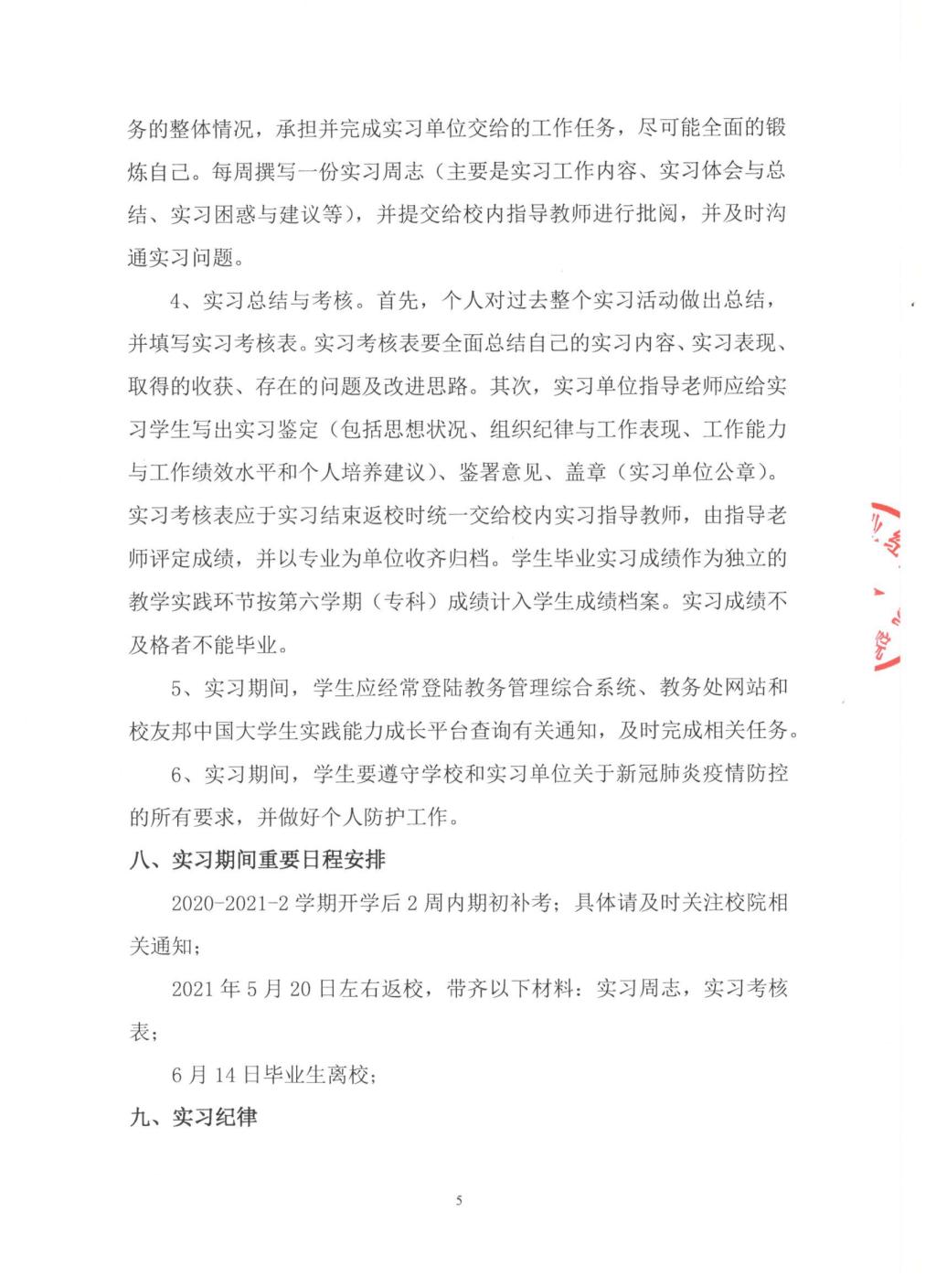 2021届伟德源自英国始于1946毕业生实习方案(专科)