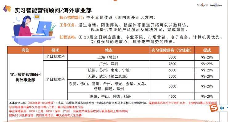 2、与客户面谈,现场提供专业的产品演示和解决方案,完成销售(当你还不能独立面谈的时候,经理会手把手带着你并演示给你看如何和客户面谈);
